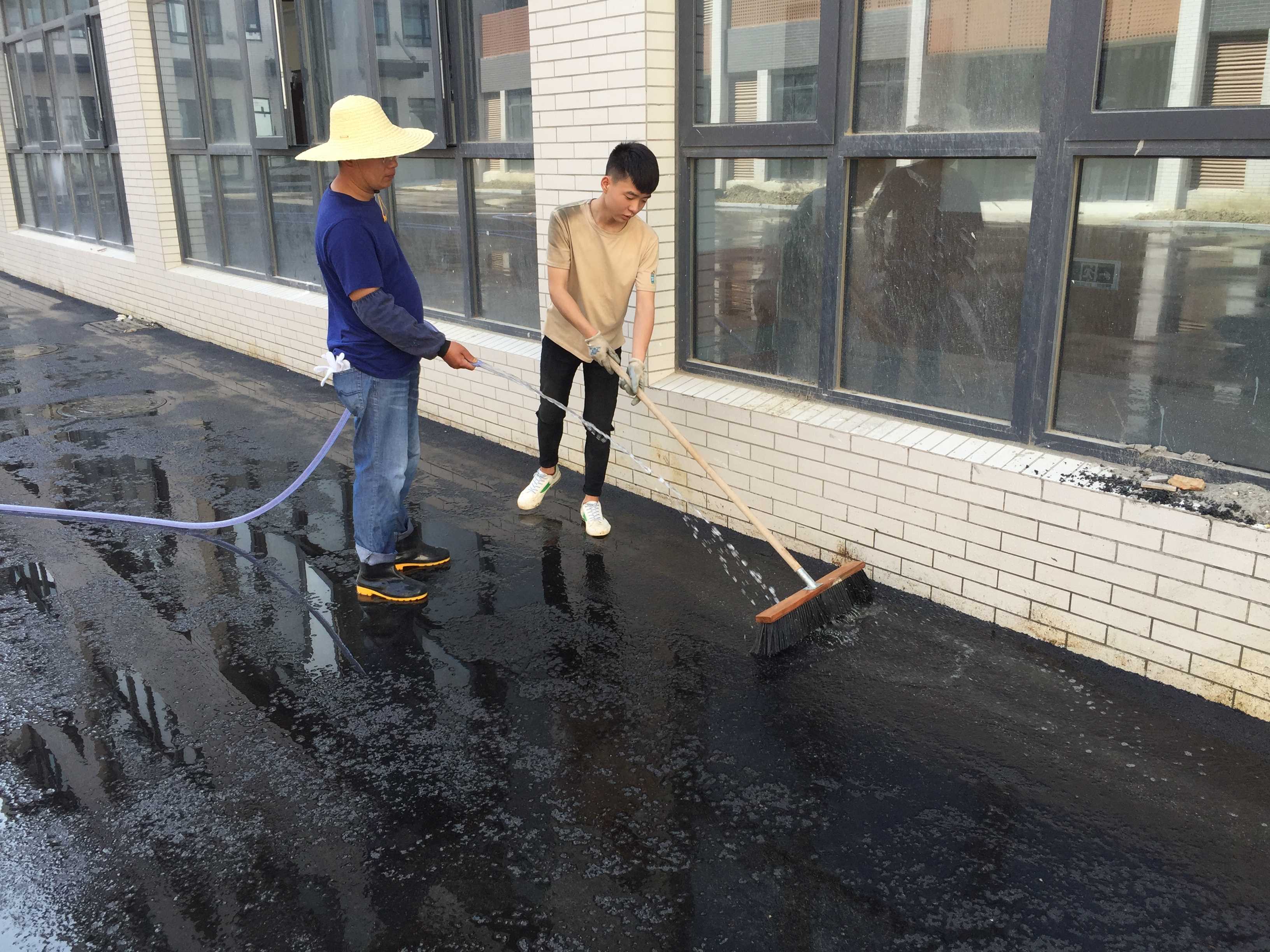 清理柏油路面表面油质。